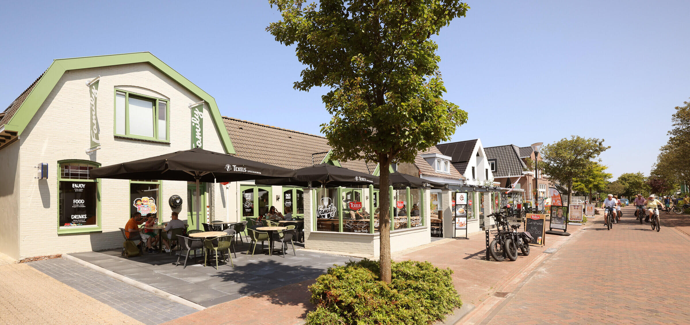 Die Speisekarte ist voller Gerichte, die jedem gefallen. Von Burgern und Flatbreads bis zu frischen Salaten und leckeren Mittagsgerichten. Alles wird frisch zubereitet, die Portionen sind großzügig und die Preise fair. Family Texel zeigt, dass gutes und bezahlbares Essen auf Texel wunderbar zusammenpassen kann. Seit Kurzem gibt es auch einen gemütlichen Biergarten hinter dem Restaurant, in dem Sie im Freien sitzen und den Blick auf den Spielplatz genießen können, während die Kinder noch eine Runde drehen oder Fußball spielen.